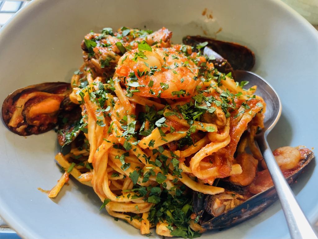 Tolles Lokal,sehr schön und modern eingerichtet…mit einer tollen Terrasse. Das Personal war immer sehr freundlich…hat nur bei den Bestellungen 1-2 mal was vergessen (vielleicht weil viel los war),wurde sich aber nach kurzem ansprechen sofort drum gekümmert…und sogar entschädigt Die Preise sind völlig okay,typisch für einen Urlaubsort würde ich sagen…kann man sich aber ruhig gönnen,denn das ist es wert. Das Essen war wirklich Mega lecker…lockerer Pizzaboden und frische Zutaten…genauso wie die Pasta…alles wurde restlos gegessen…sehr zu empfehlen