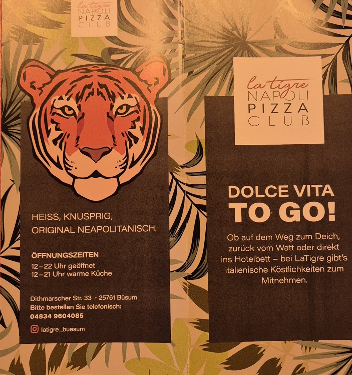 Welcome to La Tigre - Napoli Pizza Club, an enchanting culinary gem located in the heart of Büsum, Germany. Situated at Dithmarscher Str. 33, this restaurant promises an authentic taste of Naples that will transport your palate directly to Italy. With a focus on exceptional pizza and a diverse menu offering classic pasta dishes, fresh seafood, and tantalizing meats, La Tigre invites you to indulge in a truly memorable dining experience.