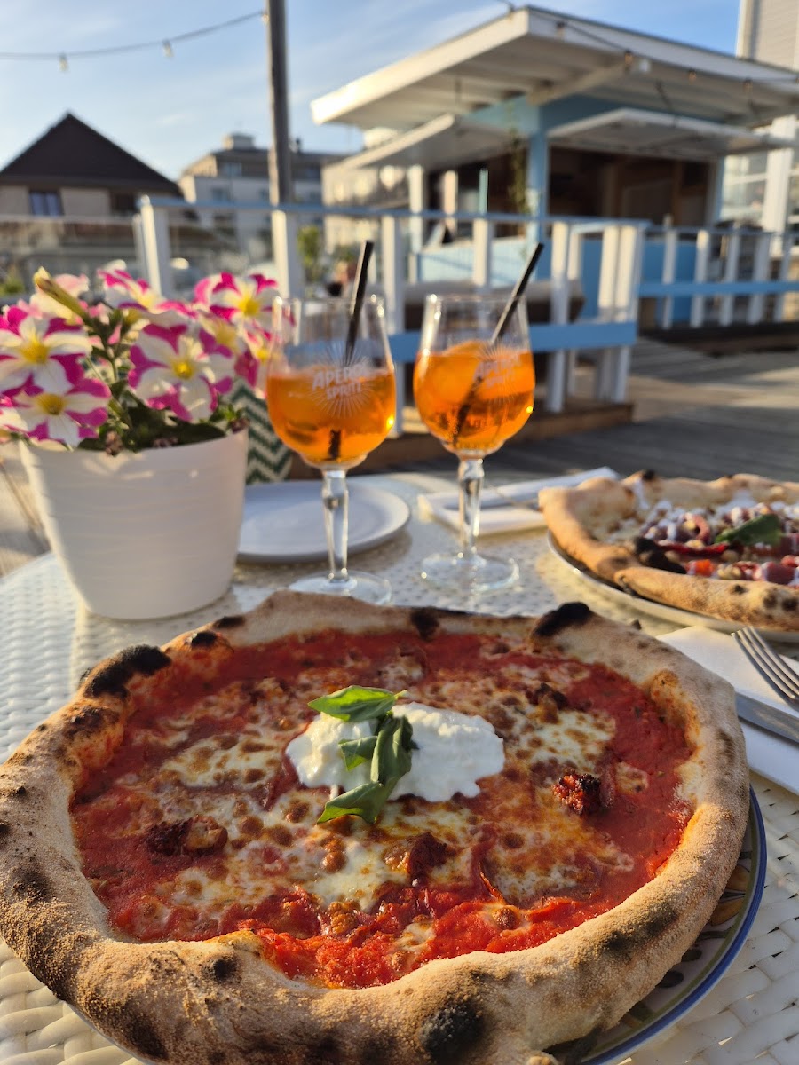 Eine sauleckere, perfekte napoletanische Pizza. Man schmeckt die Liebe zur und in der Pizza. Mit Fior di Latte und San Marzano Tomaten DOP. Sehr guter aufgegangener hydrierter Teig mit dem Leopardenmuster aus einem Pizzaofen, schnell und warm serviert. Draußen in der Sonne sitzen bei schöner italienischer Musik und Aperol Spritz.Ein perfekter Urlaubstag in Büsum. Wir sind um 13:40 Uhr angekommen, als uns noch das Angebot für den Mittagstisch bis 14 Uhr angeboten wurde. Eine Pizza/Pasta und Limonade nach Wahl für 10€. TOP Preisleistungsverhältnis!